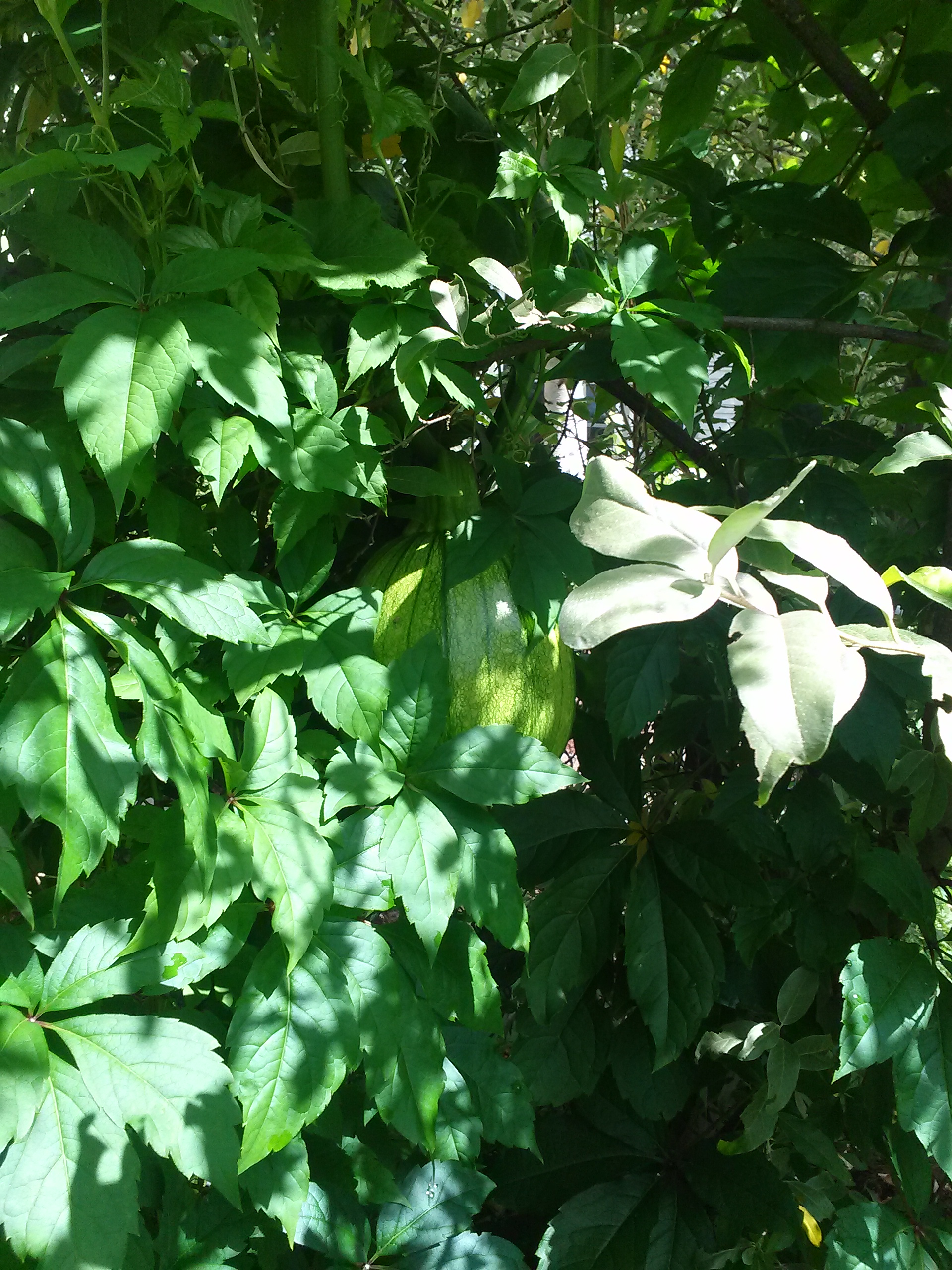 Of course sunflowers showed up in the garden. Darcy told me today thar Benny must have planted the sunflowers when we weren’t looking. The second picture is onw of our pumpkins. It attached itself to a tree and is growing dangling over our fence. It’s bigger than a softball. When I found it today I was chatting with my neighbor Fran and her daughter Tara. Tara reminded me about the pumpkin at the cemetery. It was put there in October and we found it in the Spring, still intact. Funny thing is, we haven’t found a good place to go pumpkin picking since Benny passed. He knows best I suppose.