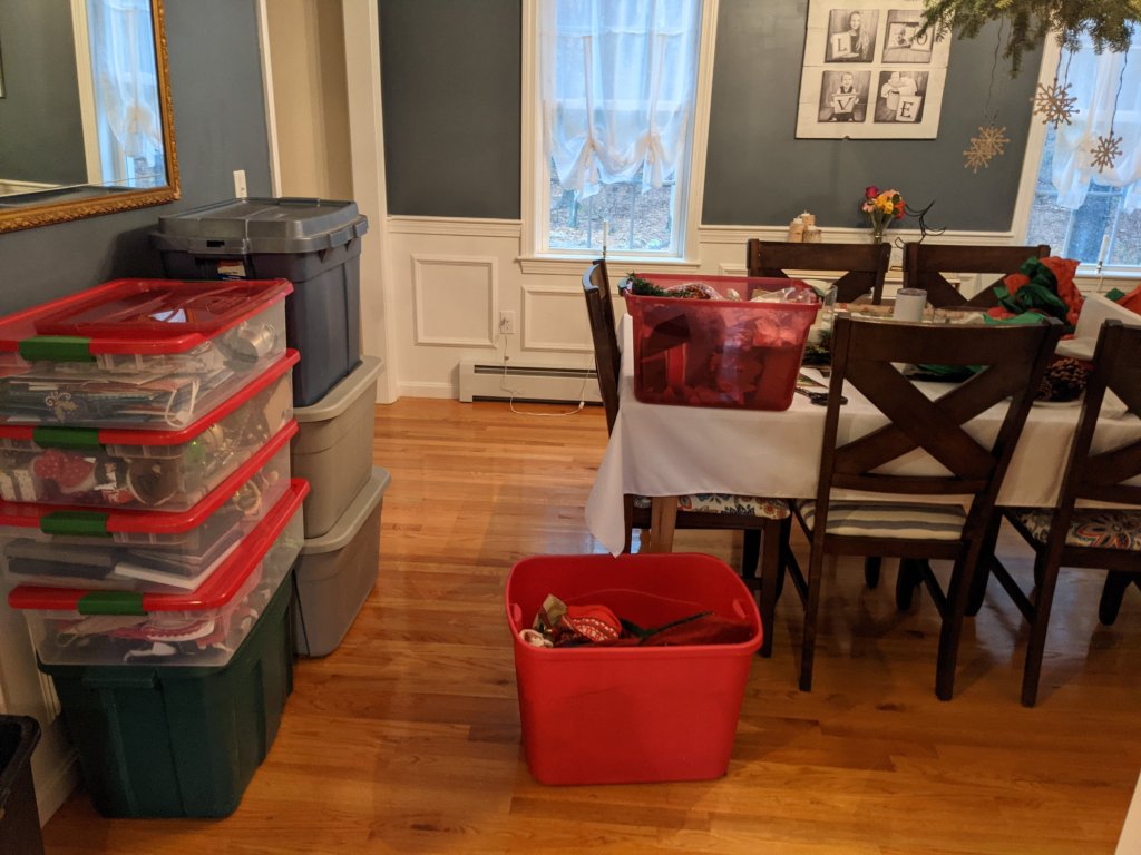 So I’m starting small. I’m going to begin with the Seasonal decor. I’m hoping that if I start small, with the stuff that I’m not emotionally attached to, it will help me feel better. Maybe I’ll keep going and maybe I won’t. Maybe I will finally tackle some of my grief items. We will see. But this is not my resolution.